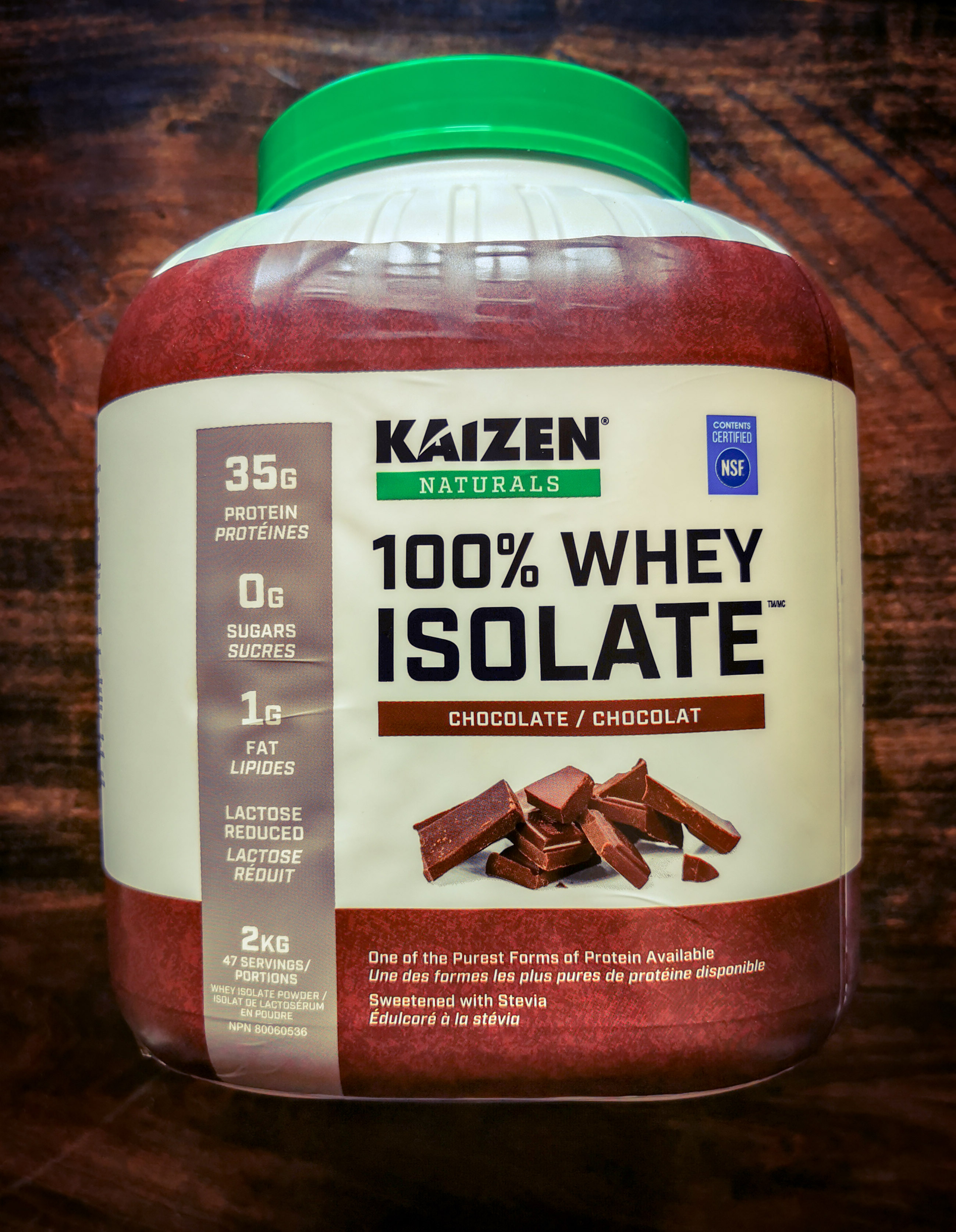 • 1-2 Servings of Chocolate Protein Powder: I personally use 2 scoops (70 grams of protein total) of Kaizen Whey Isolate Chocolate Protein from Costco. It contains artificial sweeteners, whose taste I’m generally not a huge fan of, but in this shake it works out well. Plus, some random dudes on the internet said this is preemo protein powder.