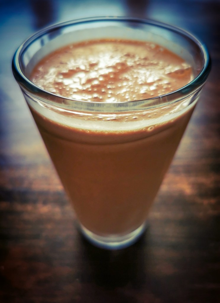 Whenever I can, I obtain my protein through real, unprocessed food sources (usually beef or chicken). Occasionally, however, I’ll supplement with a protein shake. And nine times out ten (probably more), I’ll choose to make this delicious milkshake-like impostor.