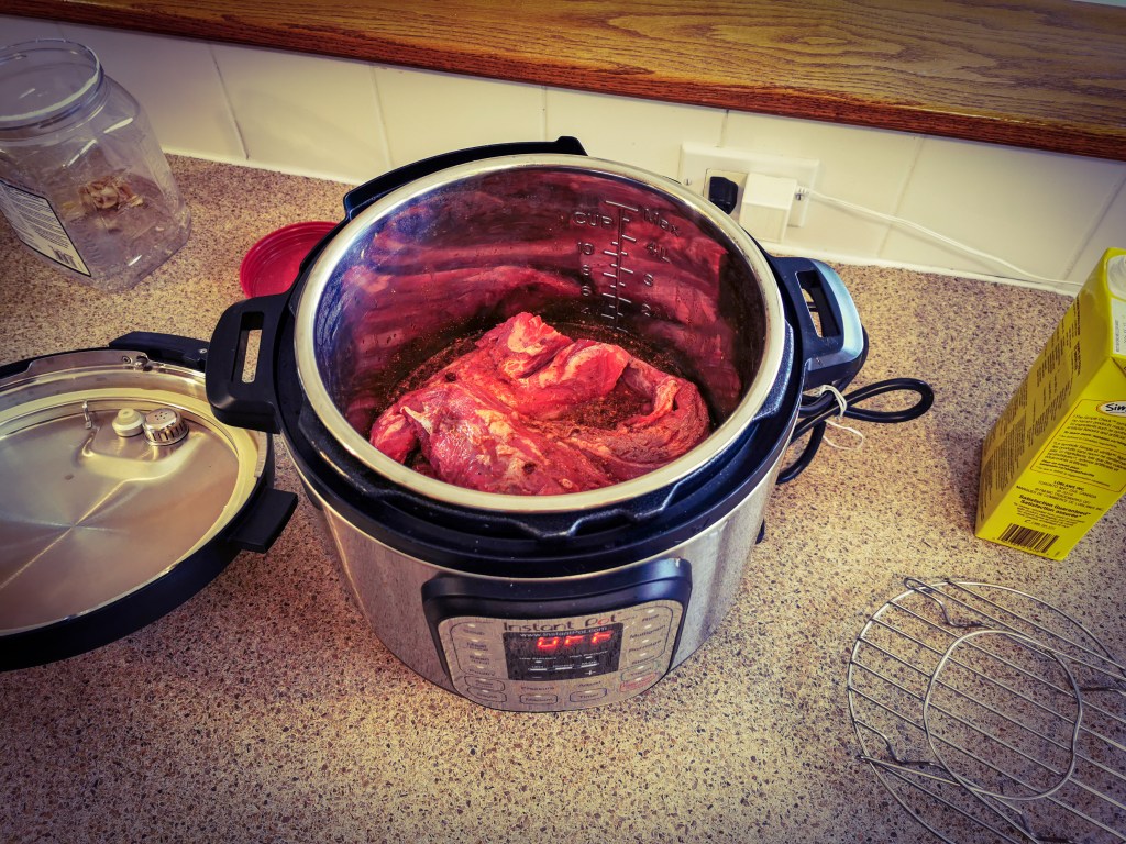 Here’s an easy dinner I threw together this evening with a beef tenderloin and an Instant Pot. It was the ‘chain’ section off a larger tenderloin I previously cut into filets (just like this). Feel free to sub a different type of meat in place of beef.