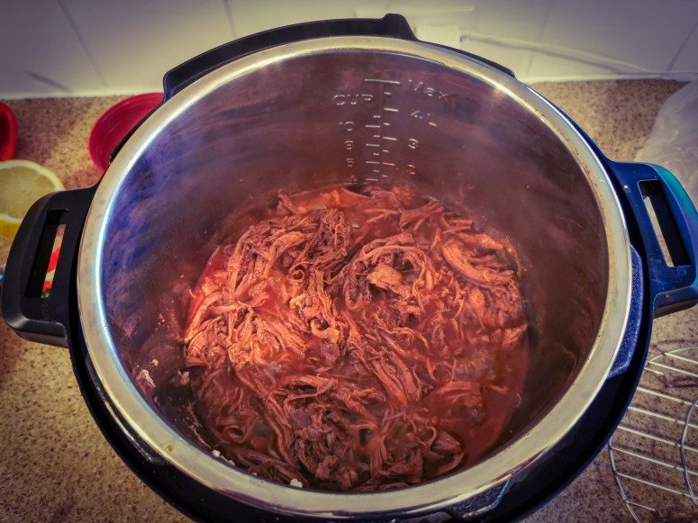 - Shred the beef with two forks.